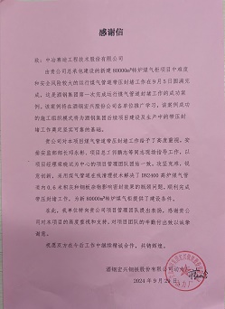 点赞!酒钢80000m³新建转炉煤气柜项目收到感谢信