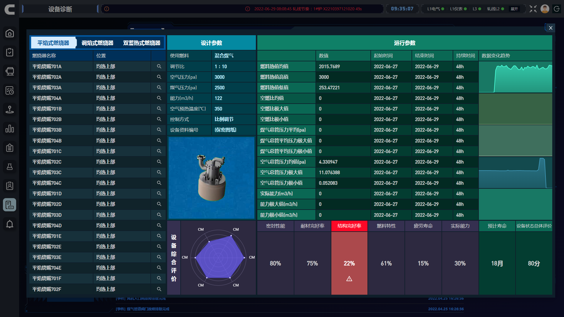 “加热炉群智能管控一体化系统”是重庆赛迪热工环保在加热炉控制领域多年积累的基础上,研发的新一代聚焦于热轧加热炉群生产环节的智能化管控一体化系统,采用炉群运行数据和热工机理模型互促驱动的生产过程数值模拟、加热质量在线预测和加热过程动态优化的协同调控新方法,耦合加热炉群上下游全过程智能管控、关键热设备运行状态动态监控及其产品性能预测,实现了加热炉及关键热设备集群的高效管控,技术及经济指标先进,有力支撑了多个加热炉工程项目。