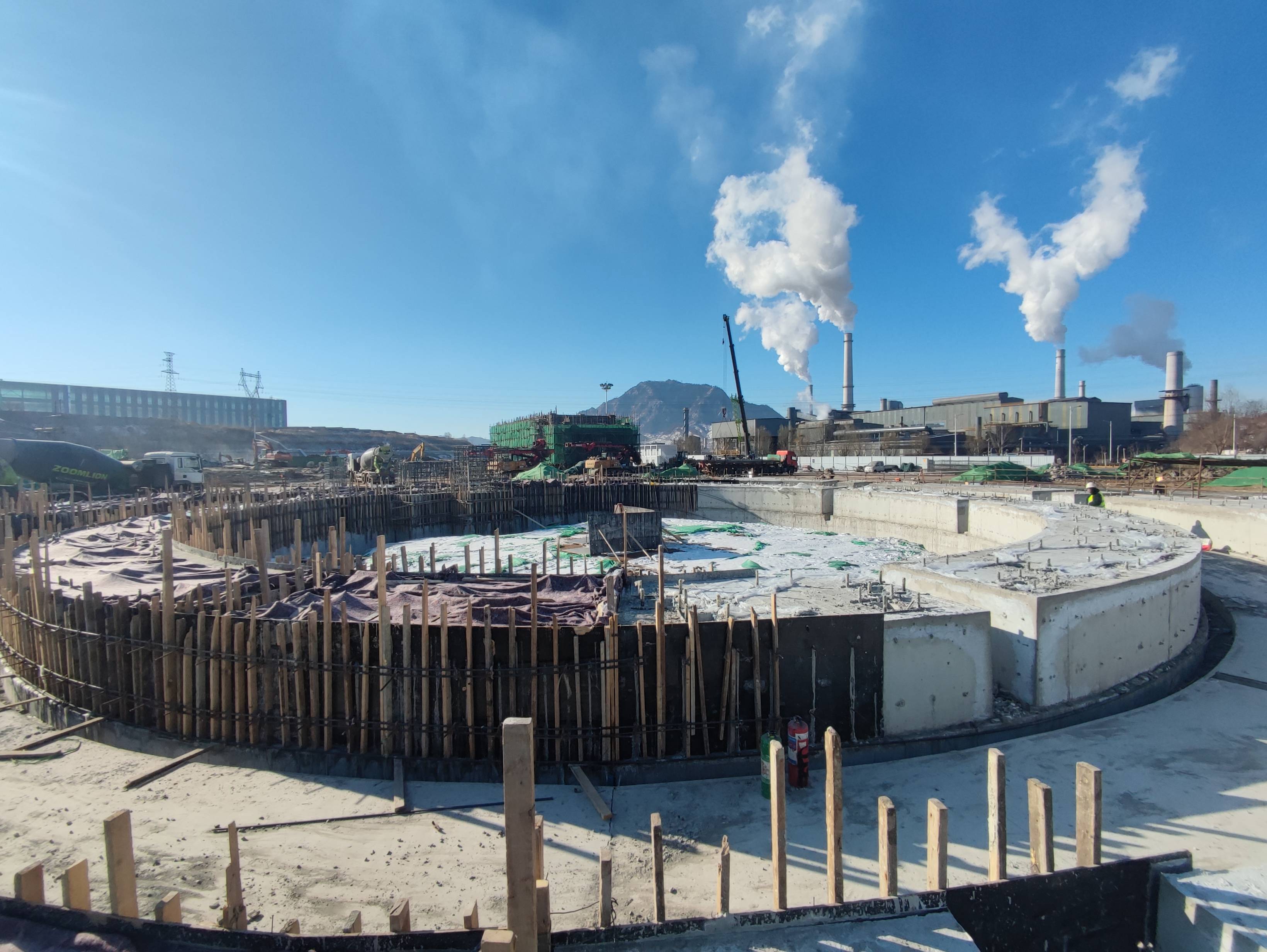 “开工前期项目面临重重困难,项目现场复杂的旧基础、冬季大雪低温天气等不利因素都对项目施工带来了极大的挑战。”运维中心丁猛回忆道。逢山开路,遇水搭桥,面对难题,项目团队不等不靠、主动出击,明确了“高标准、高效率、强安全、重环保”的工作思路,科学制定方案,项目部成员扎根现场日夜奋战,设计人员加班加点完成图纸绘制,伴随着一个个破题之策和突围之举,难点、堵点迎刃而解,转底炉项目基础冉冉建起。