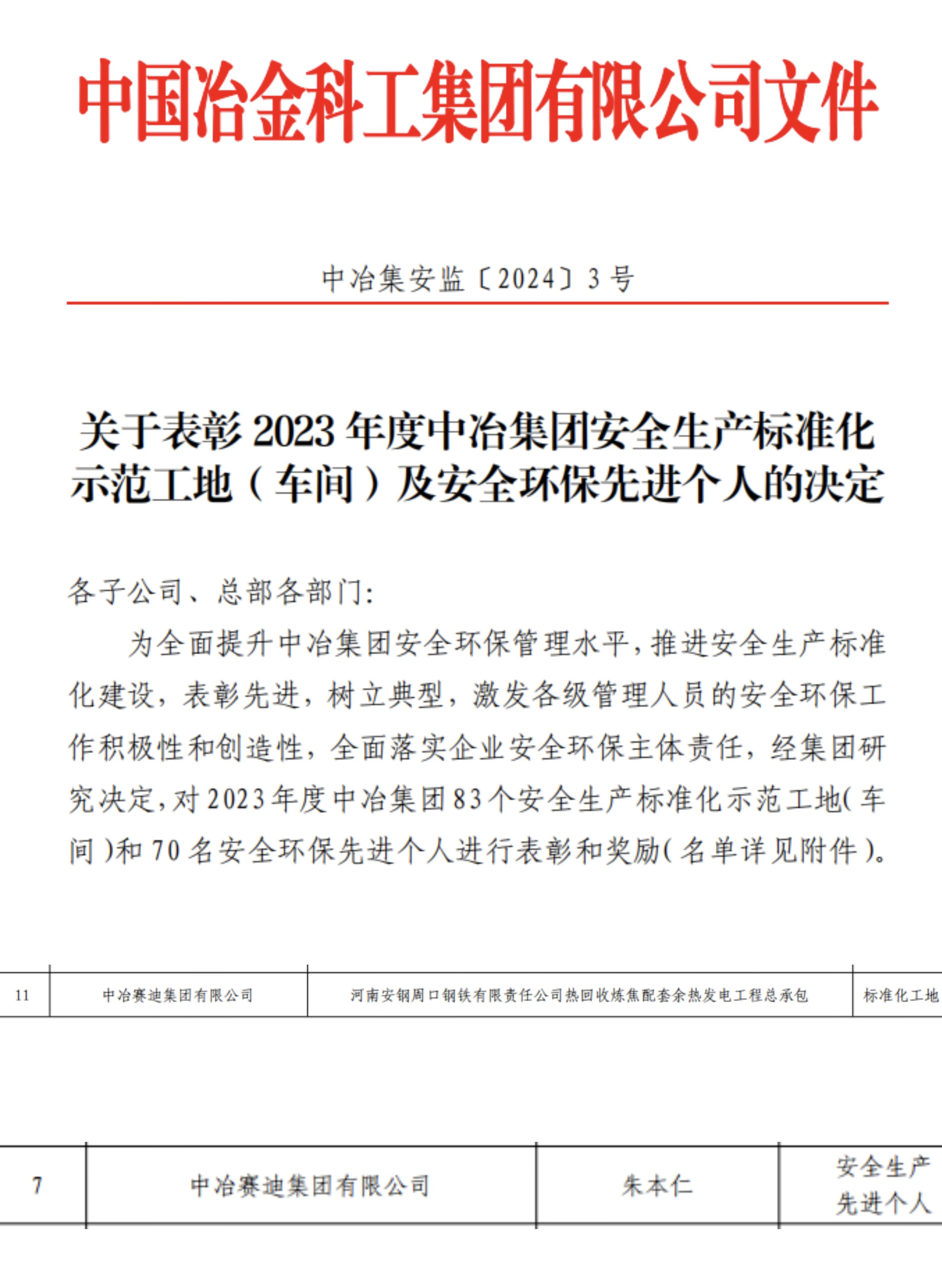作为项目经理和项目安全生产第一责任人,朱本仁在全面负责工程项目实施的同时狠抓现场安全管理,在安全管理工作中,从建章立制、齐抓共管、安全教育、过程管控等方面切实担当起安全管理的重任,以身作则落实项目经理带班,带领项目团队共同做好安全管理工作,成为一支能打硬仗的队伍,此次“安全生产先进个人”荣誉称号激励和鼓舞了朱本仁及其团队的士气,为在执行的云南德胜集中空压站及煤气柜项目实现安全无事故、顺利投产的目标接续奋斗。