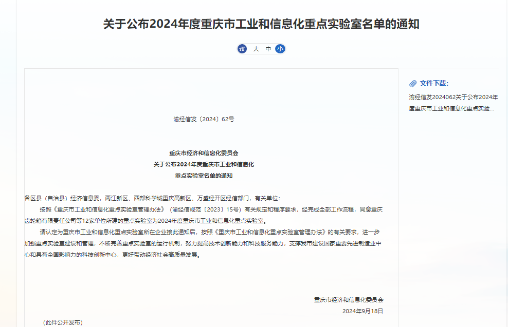 9月18日,重庆市经济和信息化委员会公布“2024年度重庆市工业和信息化重点实验室名单”,重庆赛迪