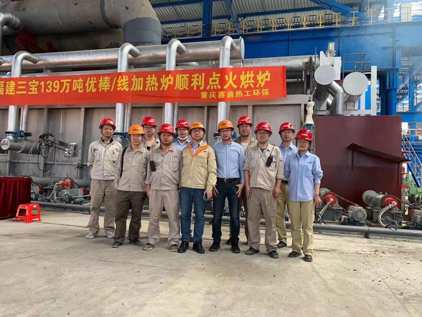 2021年4月15日16点18分,福建三宝特钢有限公司139万吨高强度优棒/线项目加热炉顺利点火烘炉,熊熊燃烧的火苗标志着本项目走向了热负荷试车的新阶段。