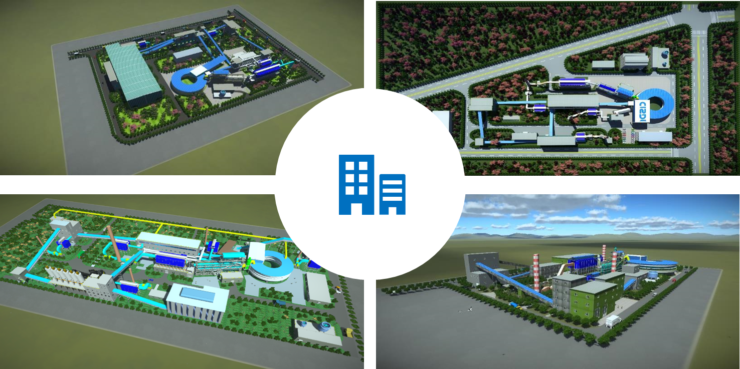 赛迪热工环保成功构建起了20/25/30万吨等不同年处理规模的系列化转底炉数字工厂,形成了从产线设备、车间厂房到全厂布局的全要素、全流程、全方位可视化呈现,实现了基于实景视点操作、指定路线浏览、设备定位展示等三维交互。结合三维数字化技术的帮助,可以快速高效地完成项目方案的概念设计、装备布局和场地优化等工作,大大降低了方案的实施成本和交流成本,提高了客户对于我方技术方案的接受度和满意度,先后在东海特钢、中天钢铁等项目的成功开拓中提供了良好支撑,并在目前紧密跟踪项目的业主汇报、方案展示等过程中得以广泛应用。