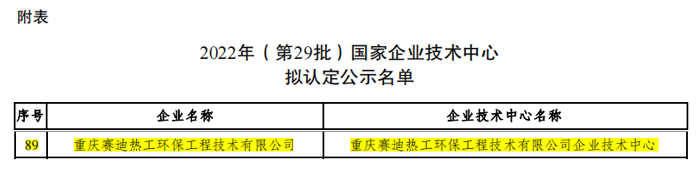 国家企业技术中心由国家发改委、科技部、财政部等多部委联合认定,审核过程严格,评价结果权威,是目前国内规格最高、影响力最大的技术创新平台之一,只对创新能力强、创新机制好、引领示范作用大、符合条件的企业技术中心予以认定。申请企业不仅要在创新能力及创新业绩上走在前列,还需在技术应用上起到示范作用。重庆赛迪热工环保企业技术中心被认定为国家企业技术中心,是国家对赛迪热工环保科研水平与技术创新力的权威认可。