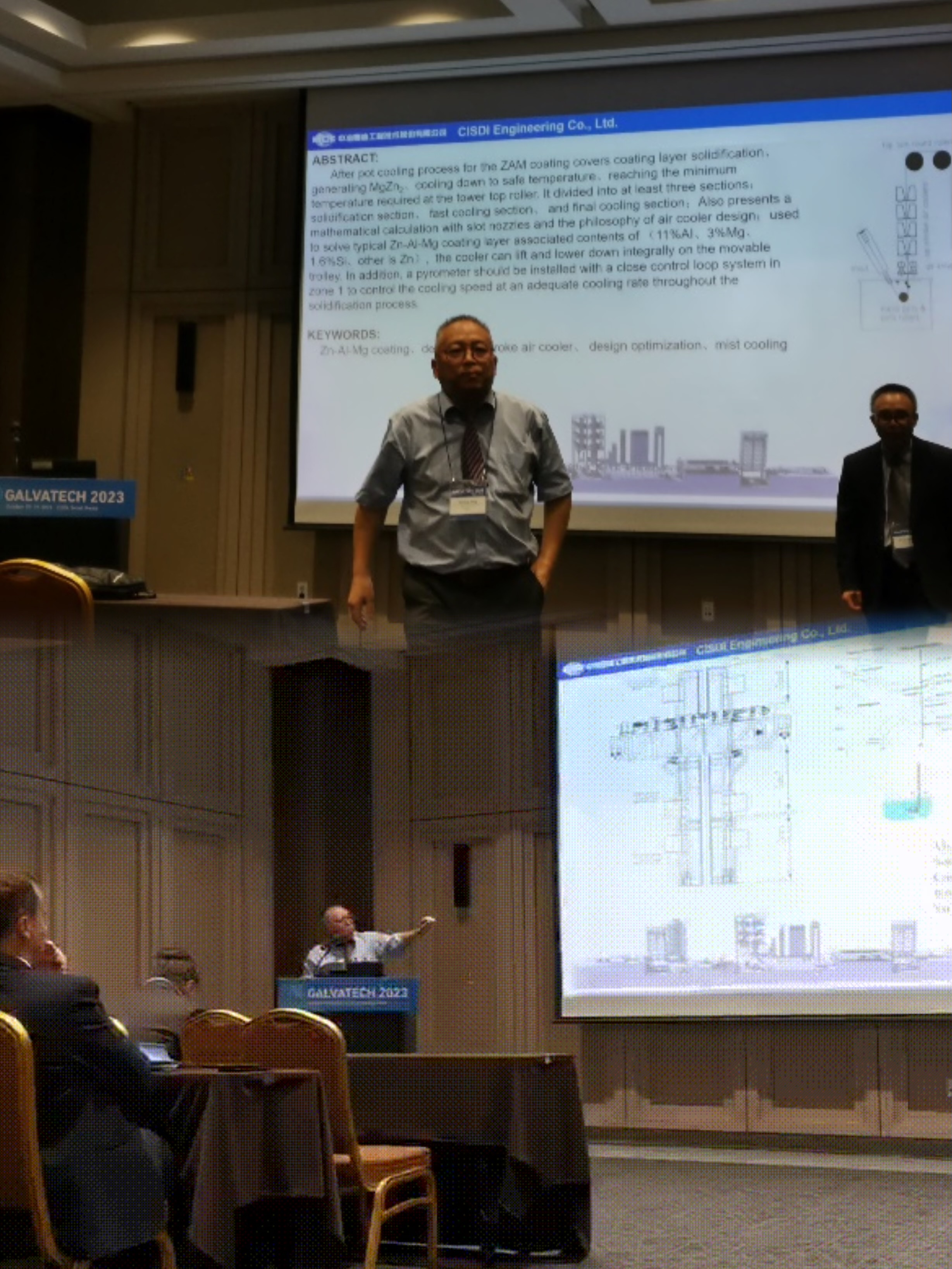 近日,2023年世界镀锌大会(GALVATECH 2023)在韩国首尔举行,来自TATA钢铁、Arcelor Mittal、宝钢、首钢、唐钢、POSCO、JFE、新日铁等全球知名企业共335名代表,法孚STEIN、西马克、韩国MEC等为代表的设备成套供货商以及WS等设备单体供货商参加大会。杨柏松、代双叶代表重庆赛迪热工环保应邀参加大会,并作《THE THREE-ZONE UP-STROKE AIR COOLER FOR STRIP CONTINUOUS Zn-Al-Mg COATING LINE》技术报告,回答相关技术问题。