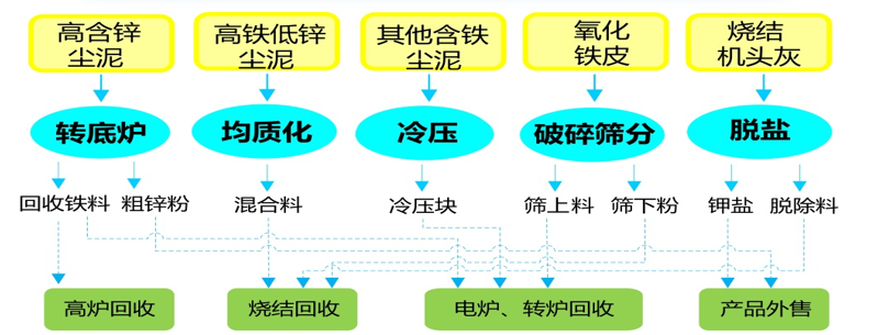 通过分类和分级,采用不同工艺处置,多种工艺柔性连接,实现尘泥固废集中处置